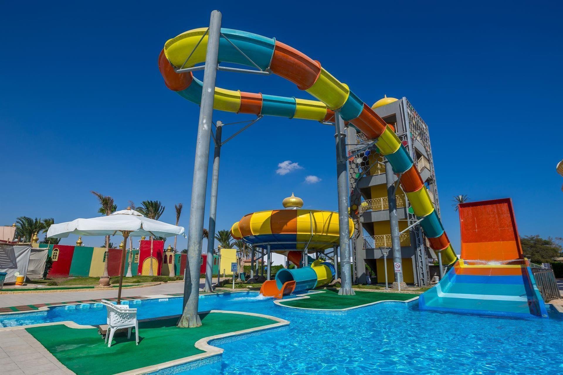 Az Aladdin Beach Resort Hurghada vendégei korlátozás nélkül használhatják a szomszédos Ali Baba Palace Hurghada szálloda strandját, strandbárját, úszómedencéit és vízi parkját, valamint vacsorát is foglalhatnak a főétteremben.