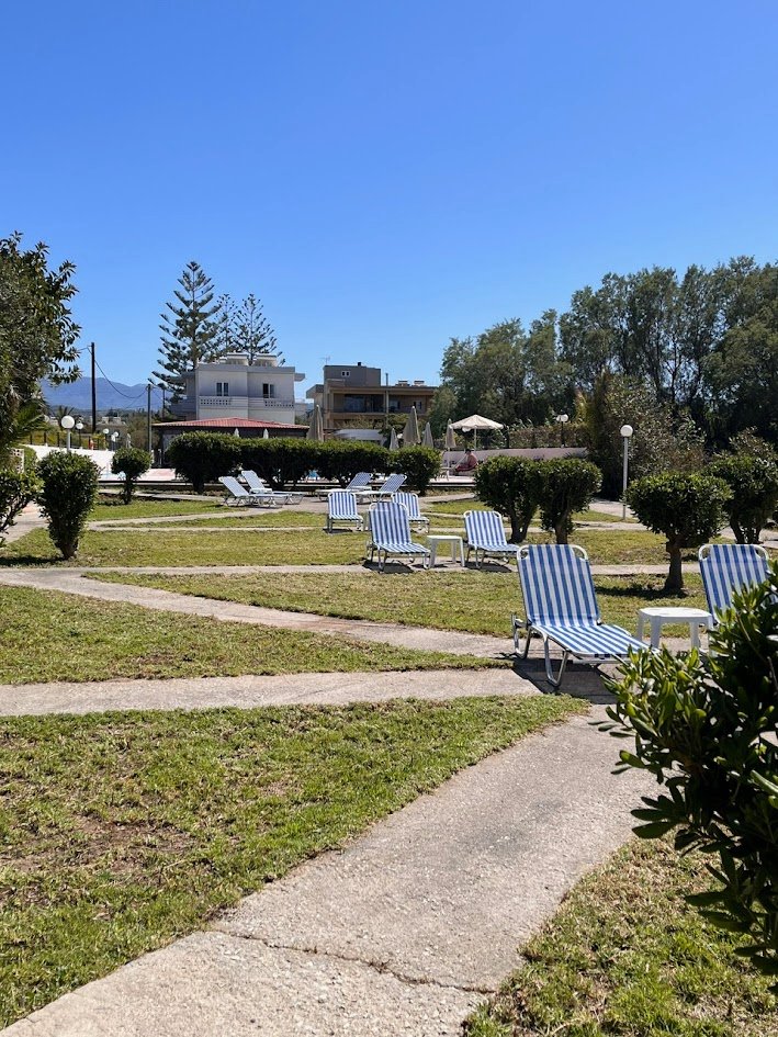 A kétszintes épületekből álló komplexum közvetlenül a tengerparton, egy kis kertben található, csendes környezetben, Gerani és Platanias között, kb. 1,5 km-re az üdülőhelyek központjától. Chania városa kb. 14 km-re, a repülőtér pedig kb. 30 km-re fekszik. A szálloda mellett minimarket is található.